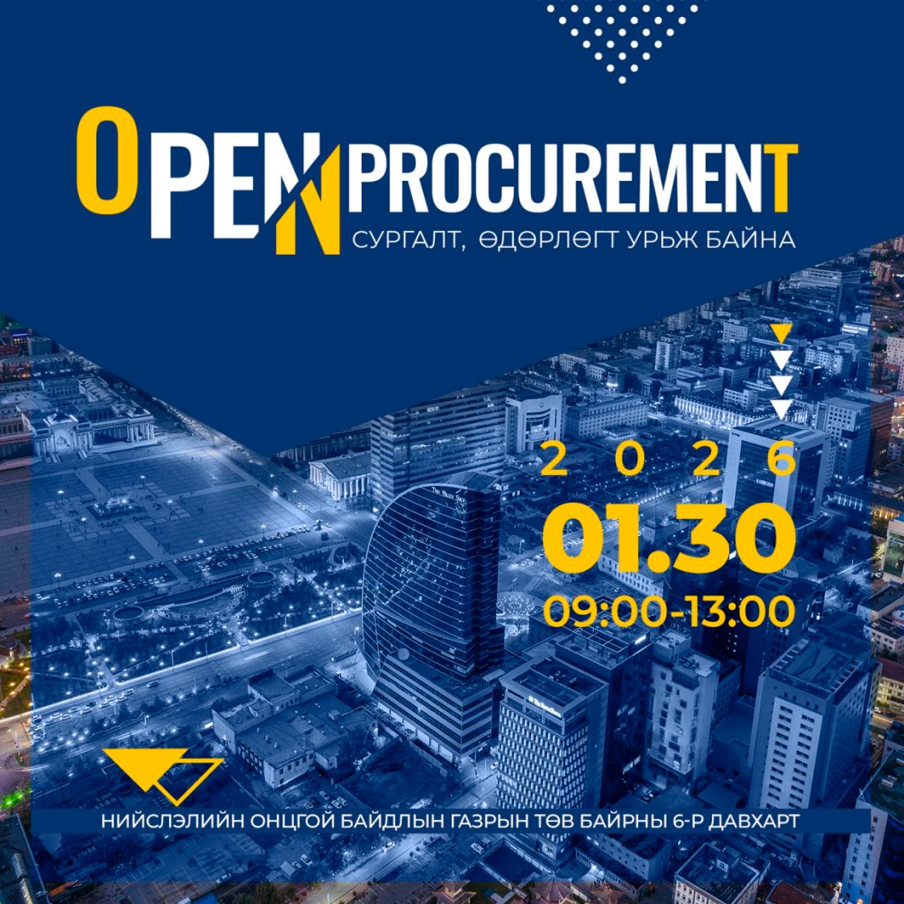 Нийслэл 2026 оныг “Бизнес эрхлэгчдийг дэмжих” жил болгон зарласан. Энэ хүрээнд тендер шалгаруулалтад оролцогчдод зориулж “Open procurement” сургалт, өдөрлөгийг иргэн, аж ахуй нэгж, байгууллагын төлөөлөл дунд зохион байгуулна.