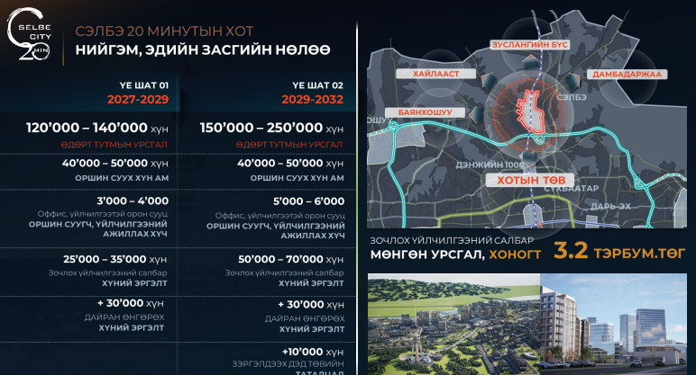 “Сэлбэ 20 минутын хот” төсөл гэр хорооллын дахин төлөвлөлтийг хэсэгчилсэн шийдлээр бус, цогц төлөвлөлтийн хүрээнд хэрэгжүүлж буй анхны томоохон төсөл гэдгээрээ онцлог. Хотын төвийн ойролцоо орчин үеийн шинэ хотын загвар бий болгож, Улаанбаатар хотын хөгжлийн дараагийн үе шатны суурийг тавьж буй талаар “Сэлбэ хорин минутын хот корпорац”-ийнхан онцлов.