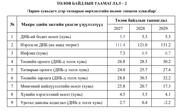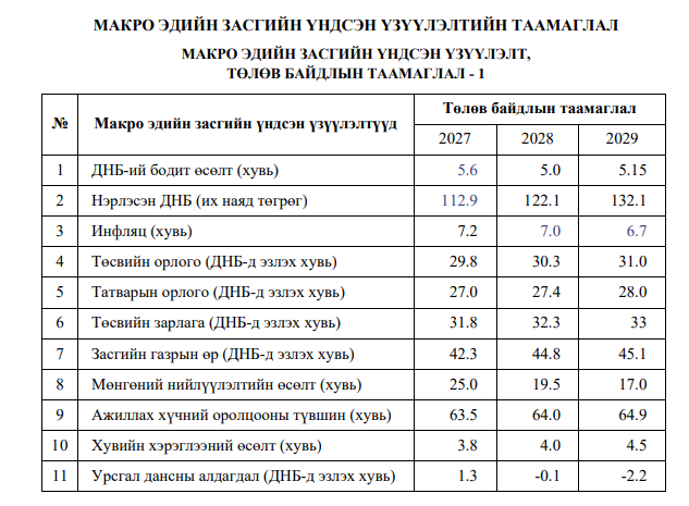 Монгол Улсын Төсвийн тухай хуулийн 8.1.2 дахь заалт 1, Төсвийн тогтвортой байдлын тухай хуулийн 12.4, 161.5.1 дэх заалтын дагуу Төсвийн тогтвортой байдлын зөвлөл (ТТБЗ)-өөс Монгол Улсын 2027-2029 оны дунд хугацааны төсвийн хүрээний мэдэгдэл