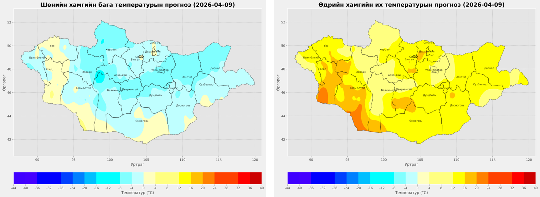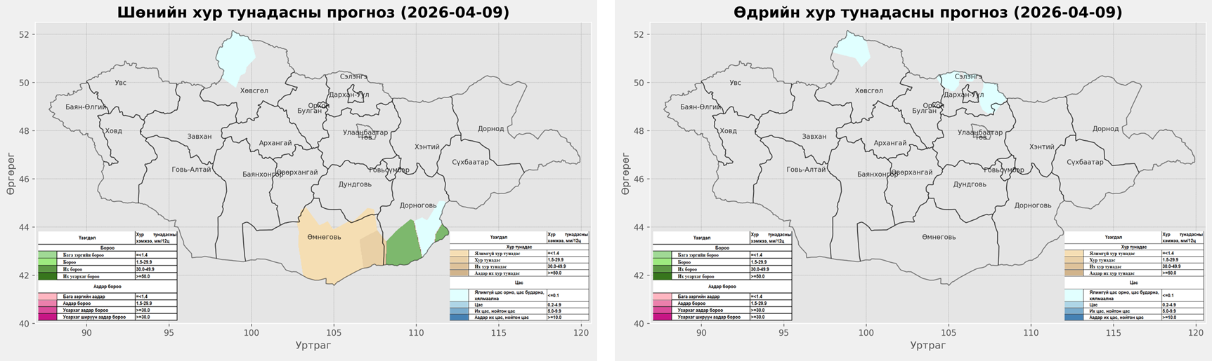 2026 оны дөрөвдүгээр сарын 9-ний 08.00-20.00 цаг хүртэлх цаг агаарын урьдчилсан мэдээ