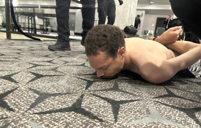 Зэвсэглэсэн эрэгтэй этгээд зочид буудлын лоббид байрлах хяналтын нэвтрэх цэгээр хүчээр нэвтрэхийг оролдож, хамгаалалтын ажилтнууд түүний зүг гал нээжээ.