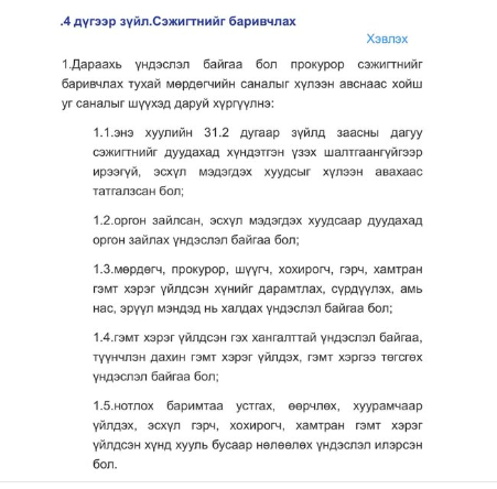Гэмт хэрэгт хэнийг ч сэжиглэж, шалгаж болно. Жишээ нь, Даваадалай орлогч дуудахад нь очсон. Гэрийн хаягтай, оргон зайлаагүй, мөрдөгчийг айлган сүрдүүлээгүй, нотлох баримт устгаад, дахин гэмт хэрэг үйлдсэн гэх зүйлгүй байхад амралтын өдөр өдөржин байлгаж байгаад шөнө дунд айдас төрүүлэн, 48 цагаар баривчилсан байх юм.
